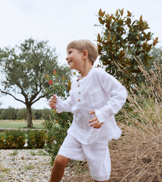 Ljeto čine mala, jednostavna zadovoljstva. Osjećaj kamenčića pod nogama. Listovi trave koji češkaju nogice. Ove jednostavne kratke hlače s elastičnim pojasom idealne su za dan na plaži ili popodnevni piknik. Uparite ih s Mariner košuljom kratkih rukava ili Mariner košuljom dugih rukava i stvorite lepršav komplet za svog malog istraživača.