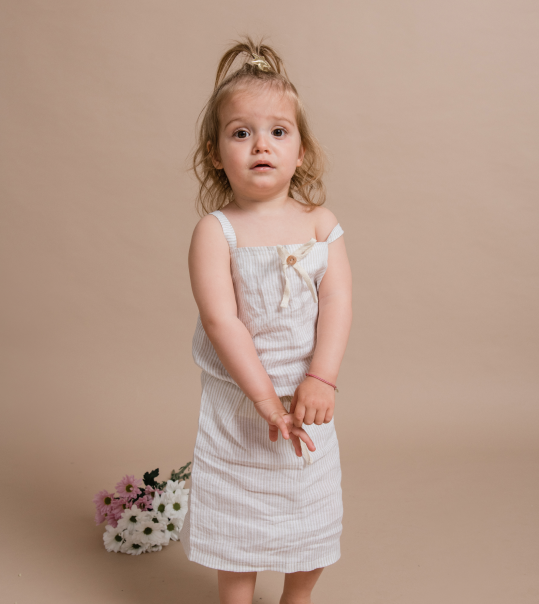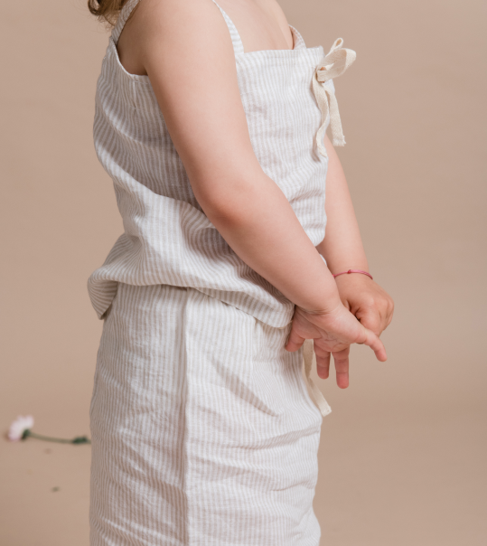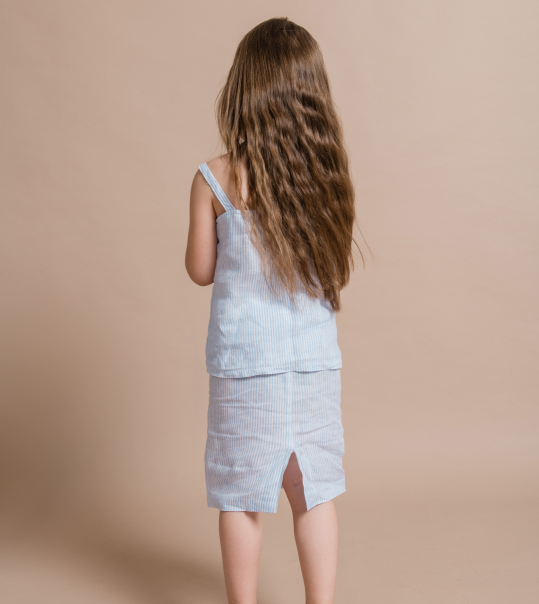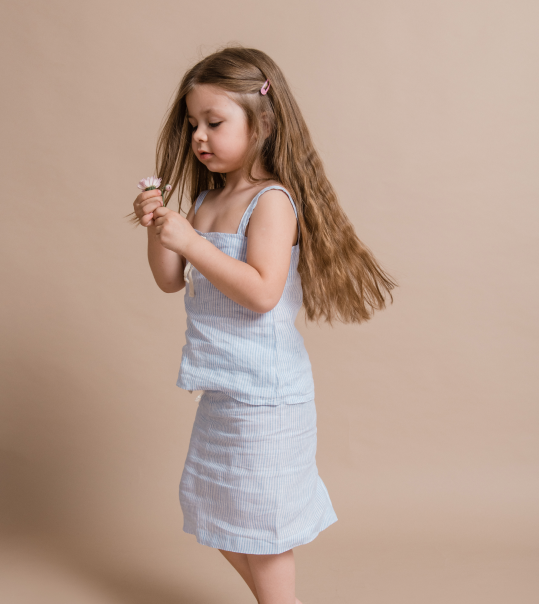 Svako je ljeto ispunjeno pričama. Svakodnevne stvari poput kamenčića ili naplavljenog drveta u tren oka postanu dvorci i zmajevi. U ovoj lepršavoj suknji ukrašenoj sa slatkom mašnicom vaša će djevojčica uživati ​​u šetnji, izmišljajući nove priče. Nakon dugog razigranog poslijepodneva na plaži ili u vrtu, ova svestrana suknja odlična je za šetnju gradom uz sladoled. Suknja ima izdržljiv pojas i idealno se kombinira s Novella topom bez rukava.