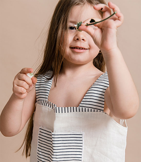 Male istraživačice vole juriti naokolo, a opet izgledati stylish. Odaberite ovu haljinu bez rukava za ljetne igre i zabave. Dok odrasli razgovaraju i uživaju u hrani i piću, mali će se istraživači igrati u vrtu i stvarati nove uspomene. Haljina ima široke naramenice, prednji džep i porub ukrašen tankim tamnosivim prugama.